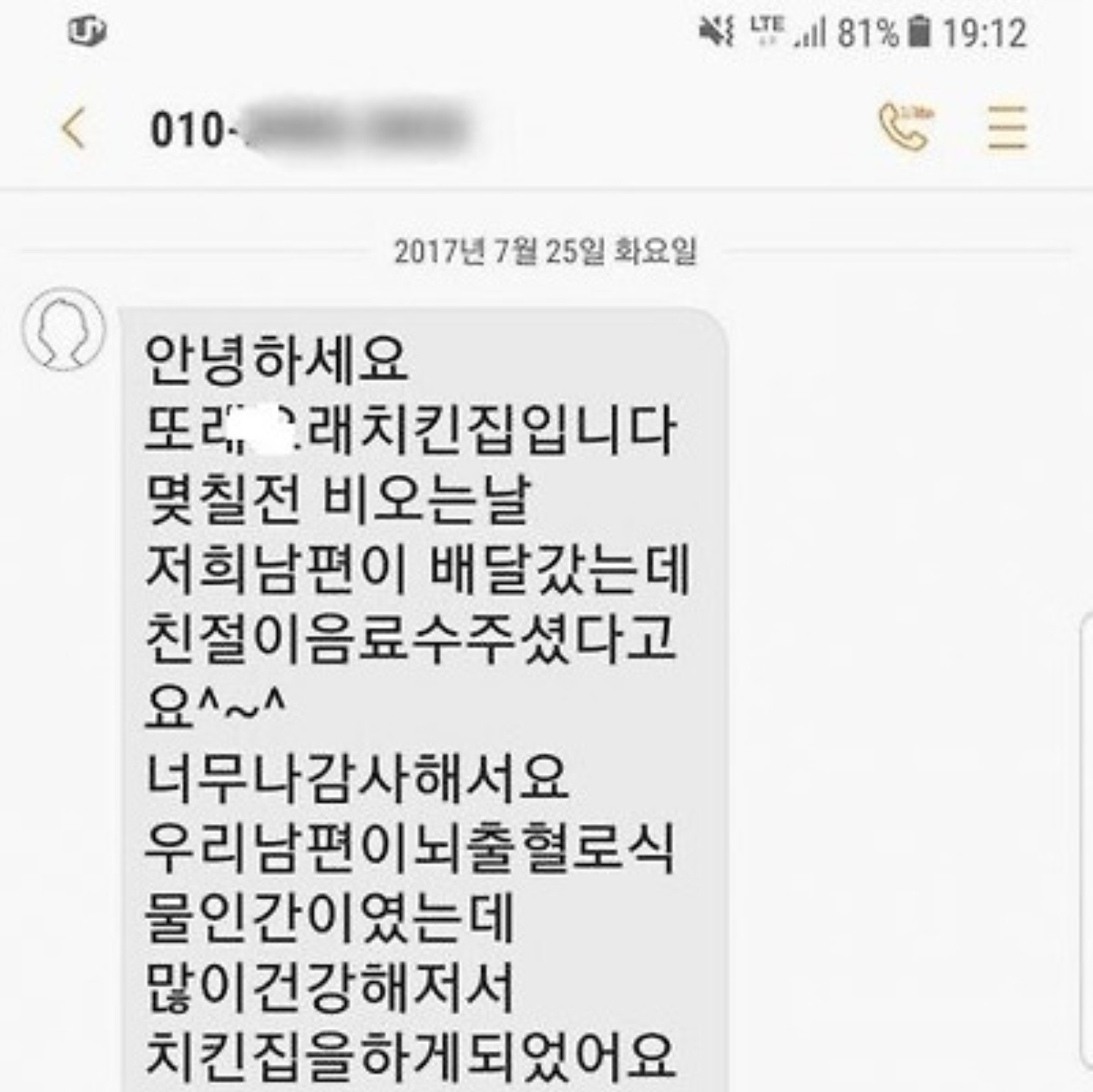 치킨집에서 온 문자