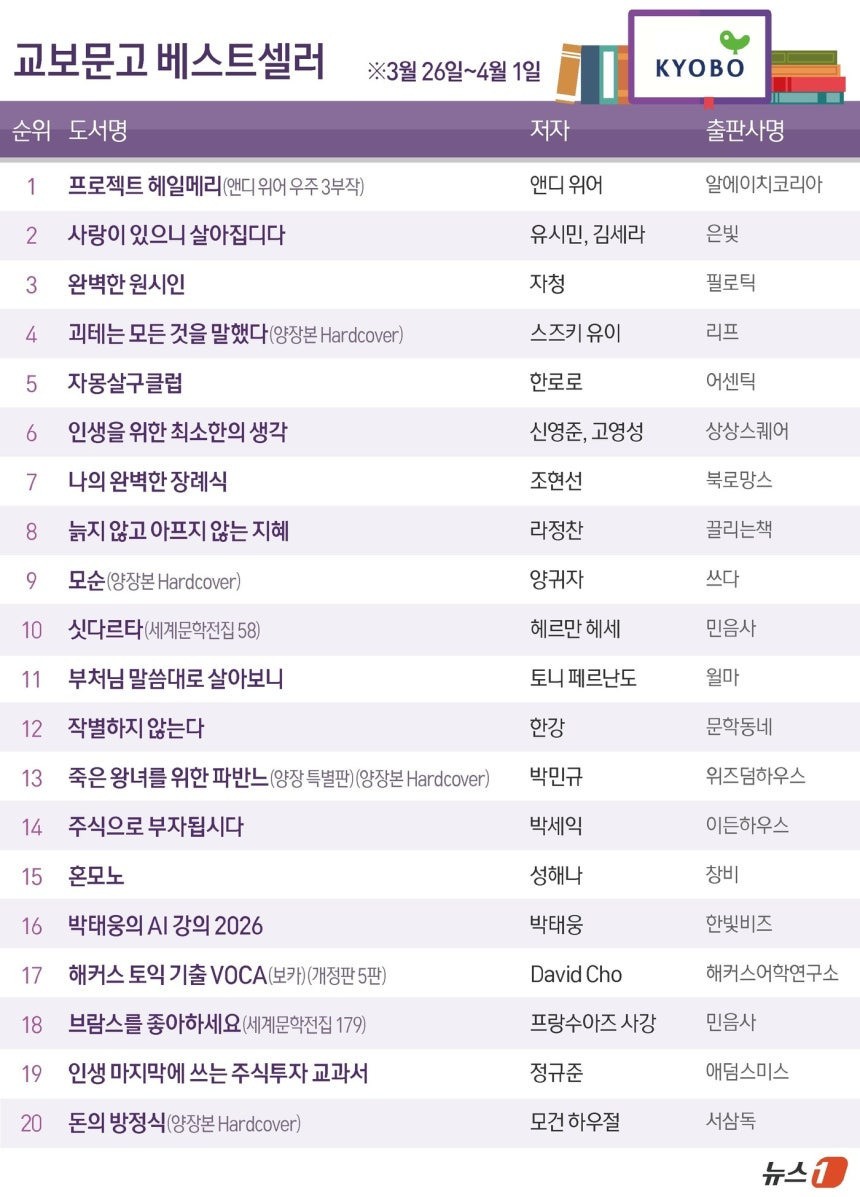 교보문고 3월 넷째주 베스트셀러 순위