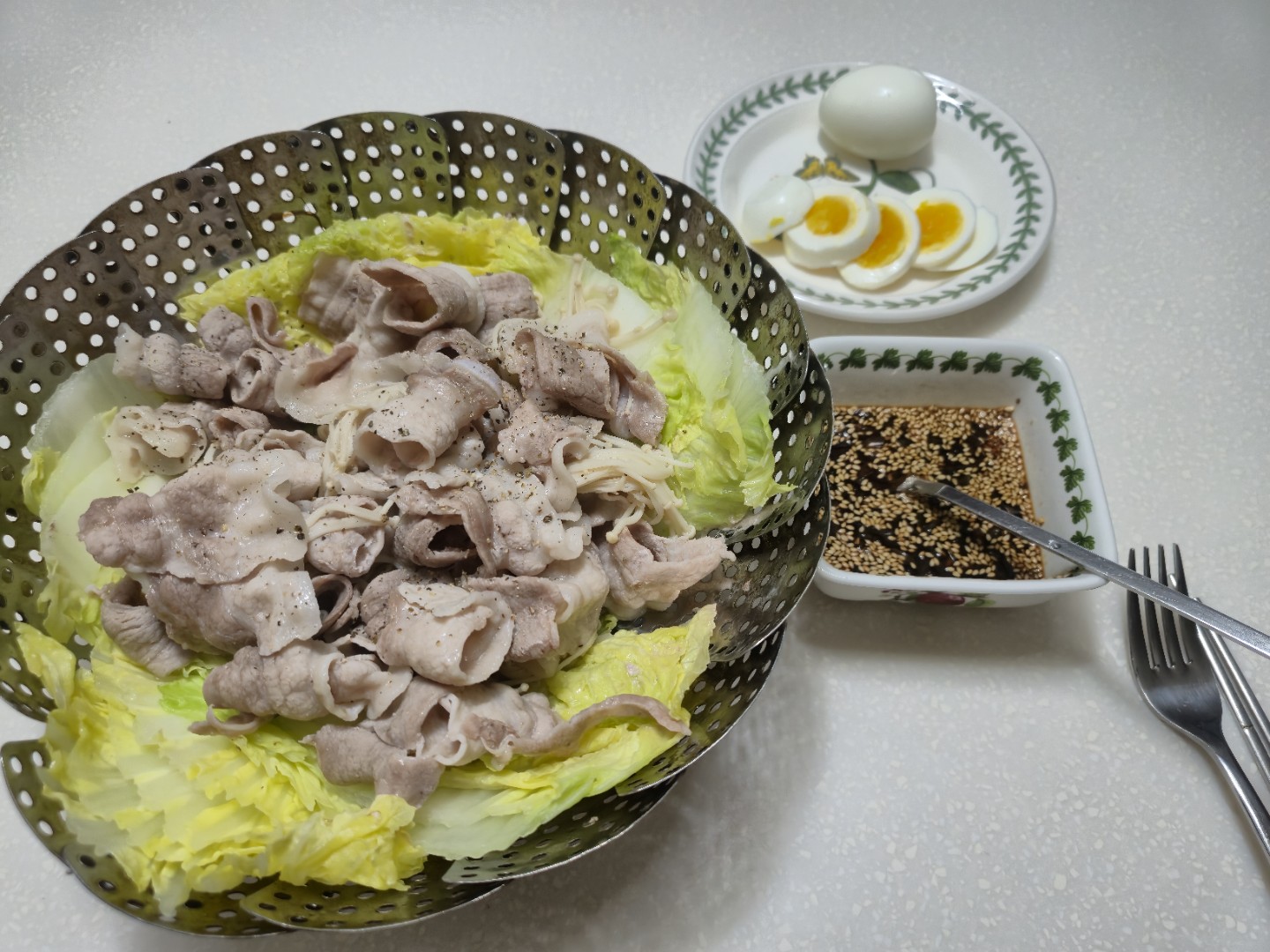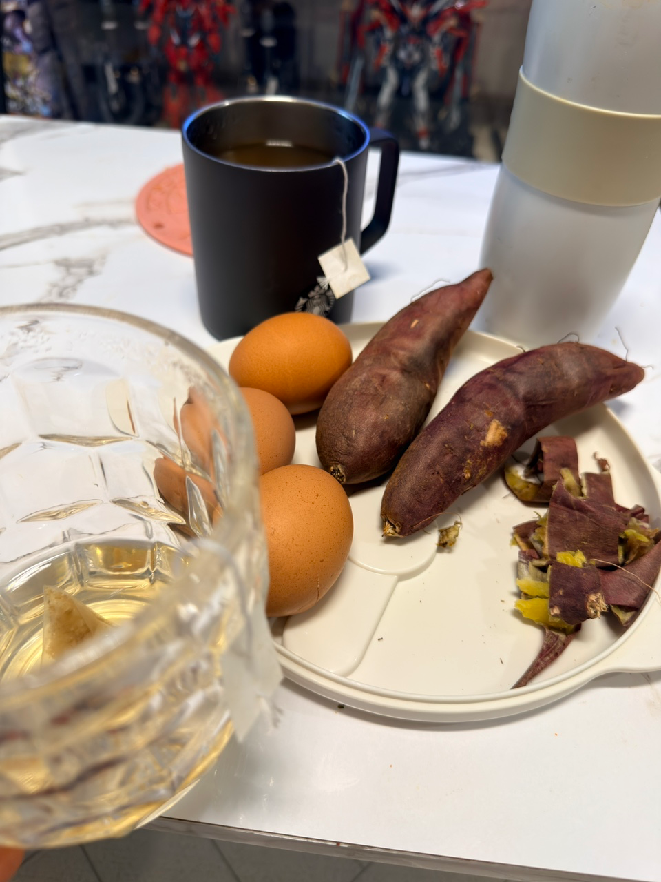 돼지 감자 차에 고구마하나 계란두개
