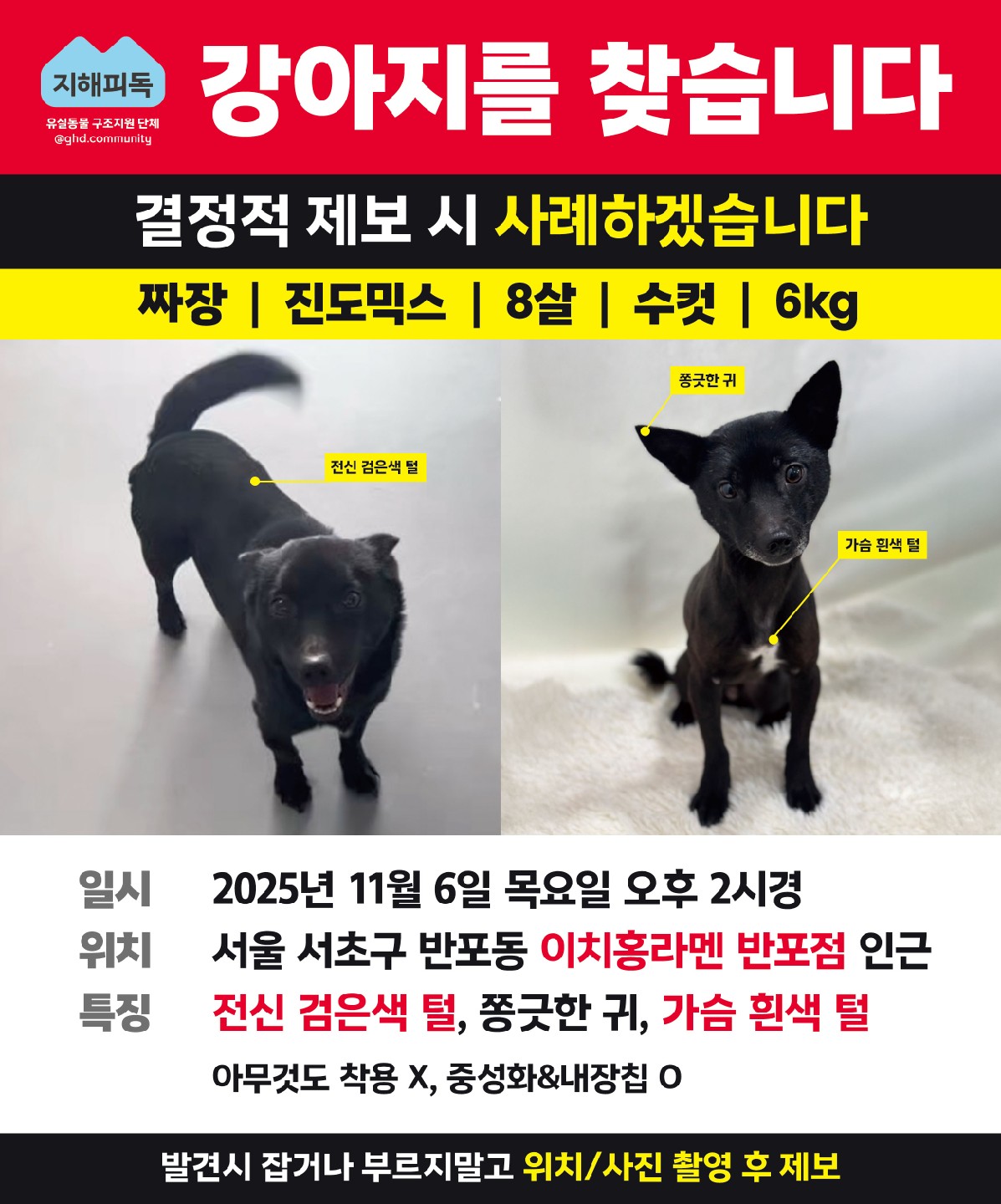 잃어버린 반려동물을 찾고 있어요. 잃어버린 멍냥이를 찾고 있어요. 함께 찾아주세요! ❤️