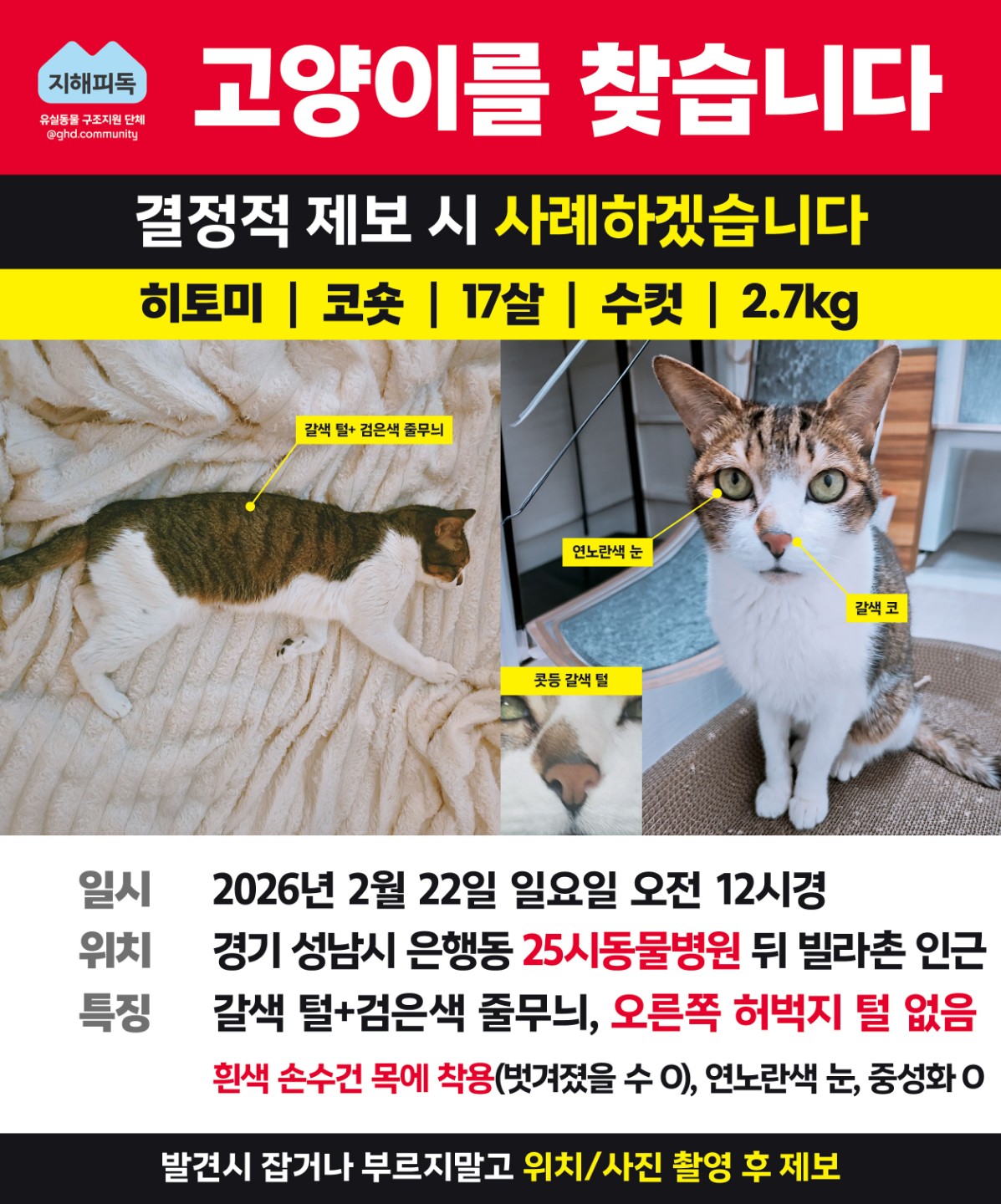 🚨실종9일째) 고양이를 찾고있어요🚨