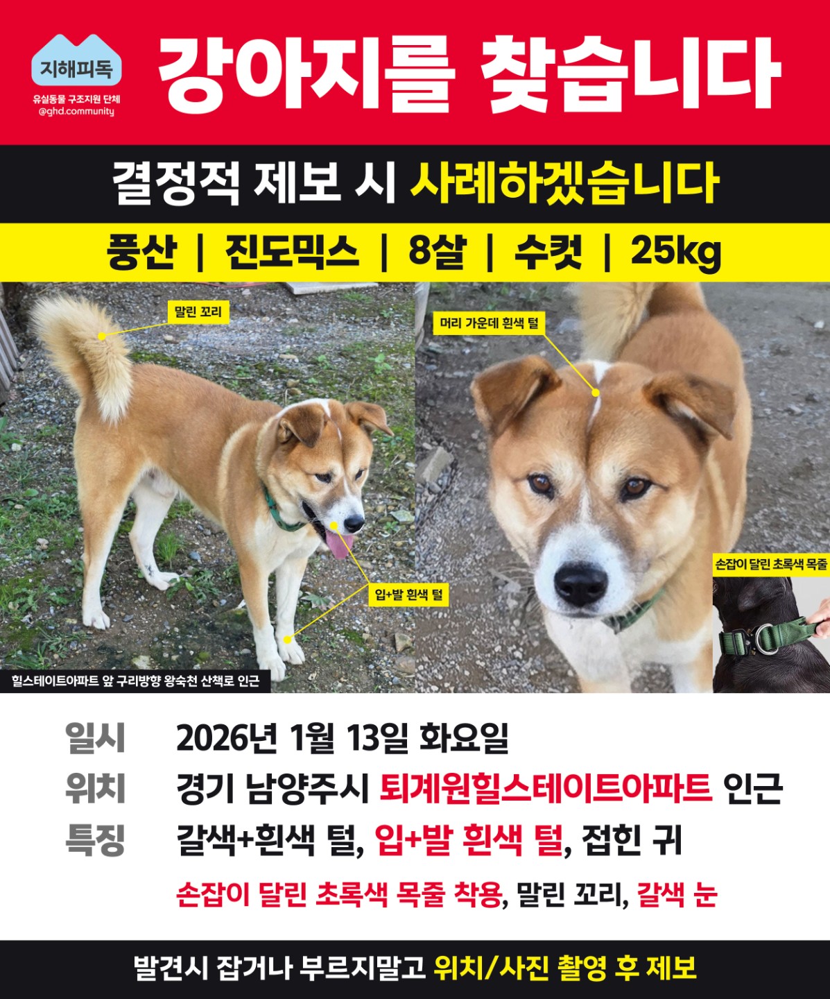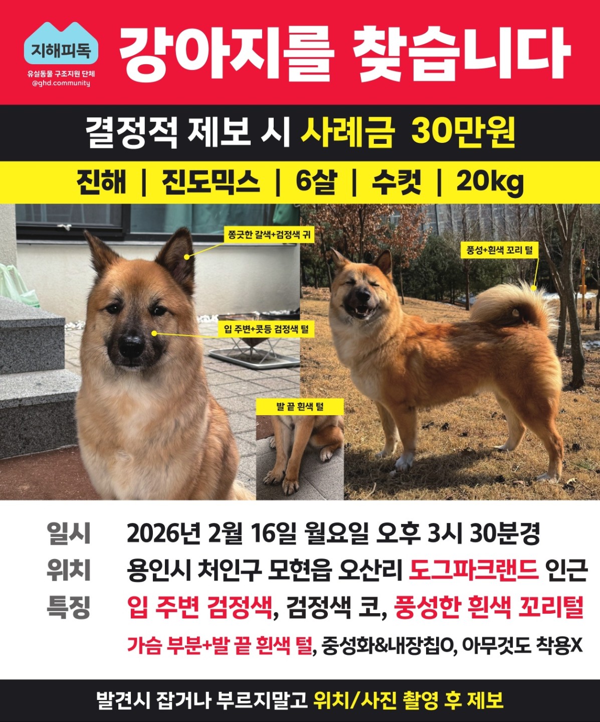 📢 소중한가족 진도믹스 풍산이를 찾습니다🤎