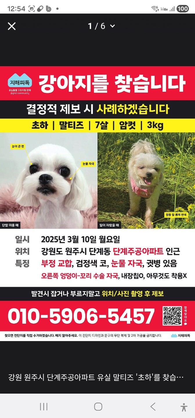 뽀삐애타게찾는주인분있어요 도와주세요