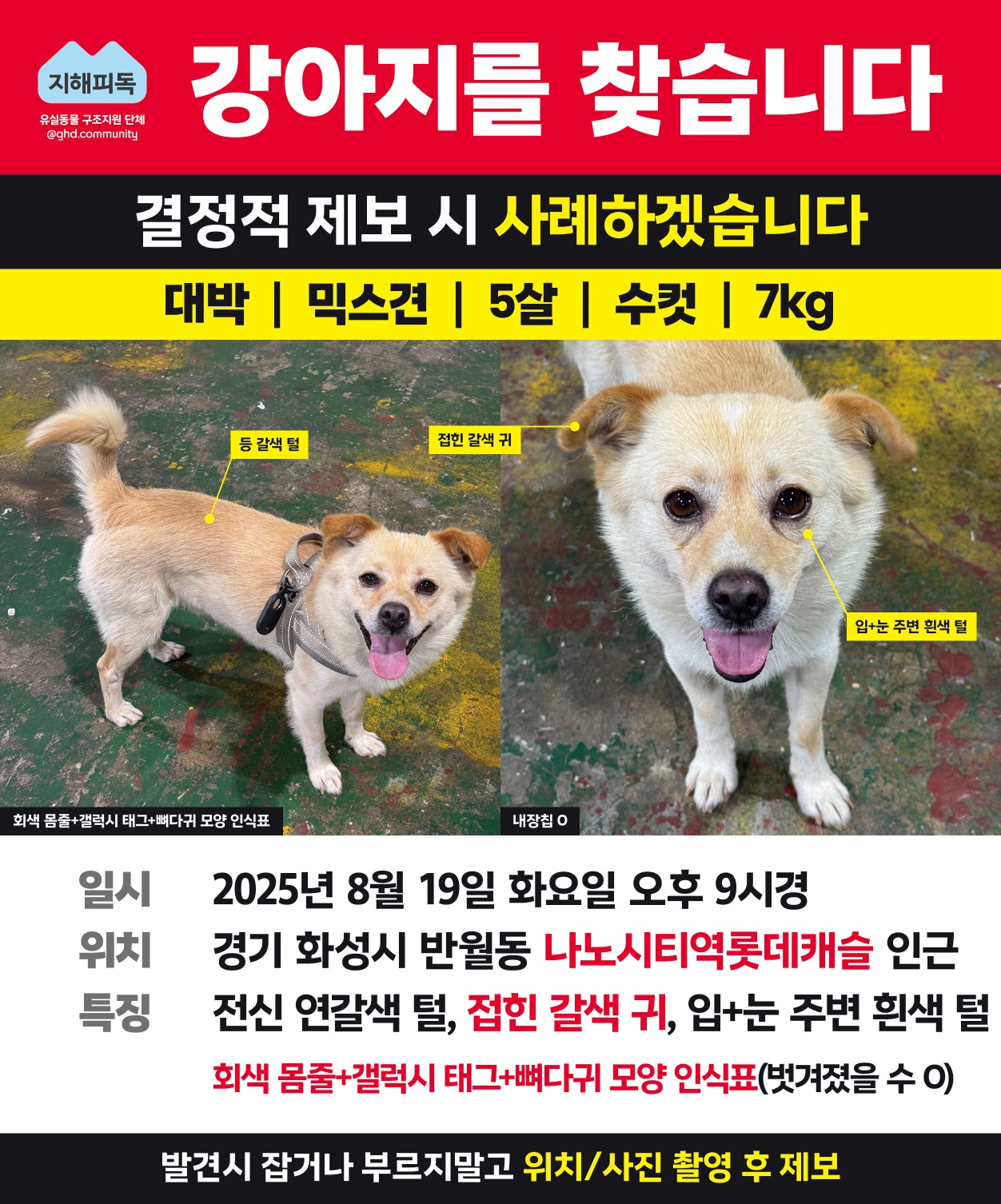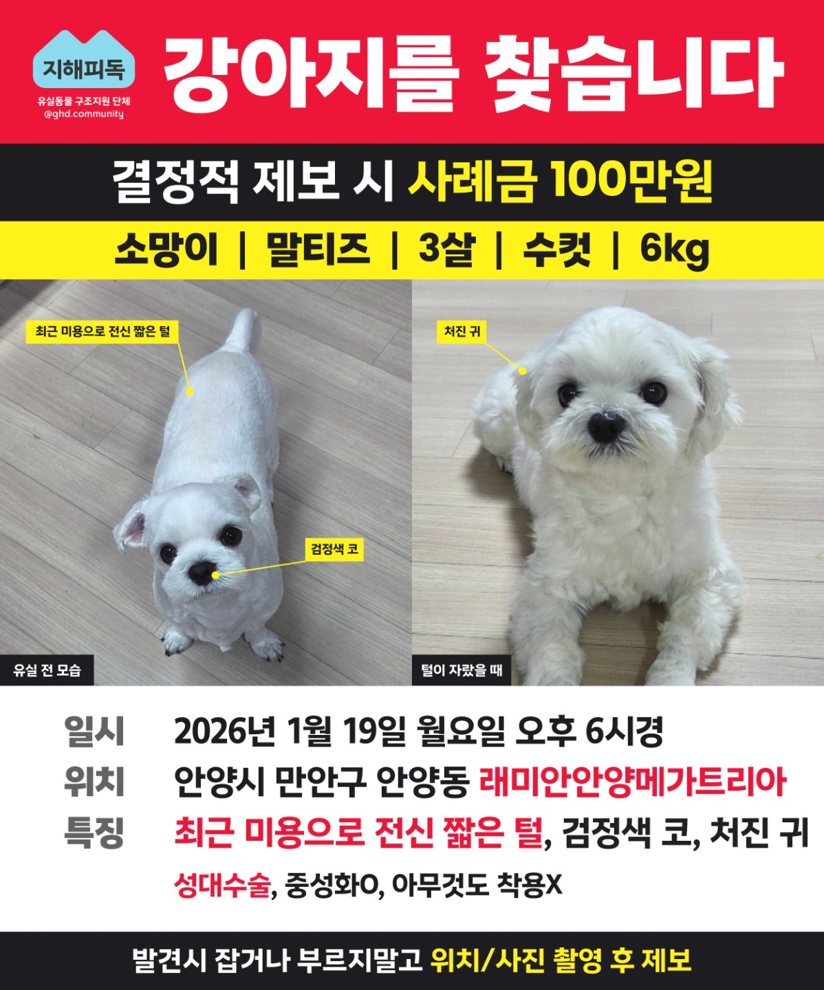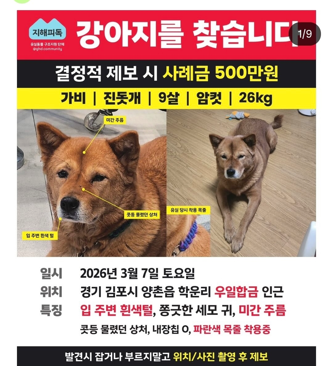 잃어버린 반려동물을 찾고 있어요. 잃어버린 멍냥이를 찾고 있어요. 함께 찾아주세요! ❤️