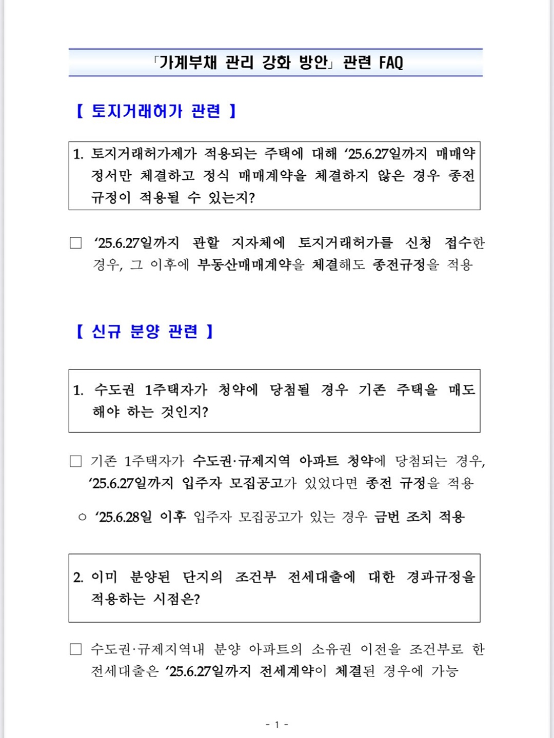 대출규제 관련 FAQ 나왔네요