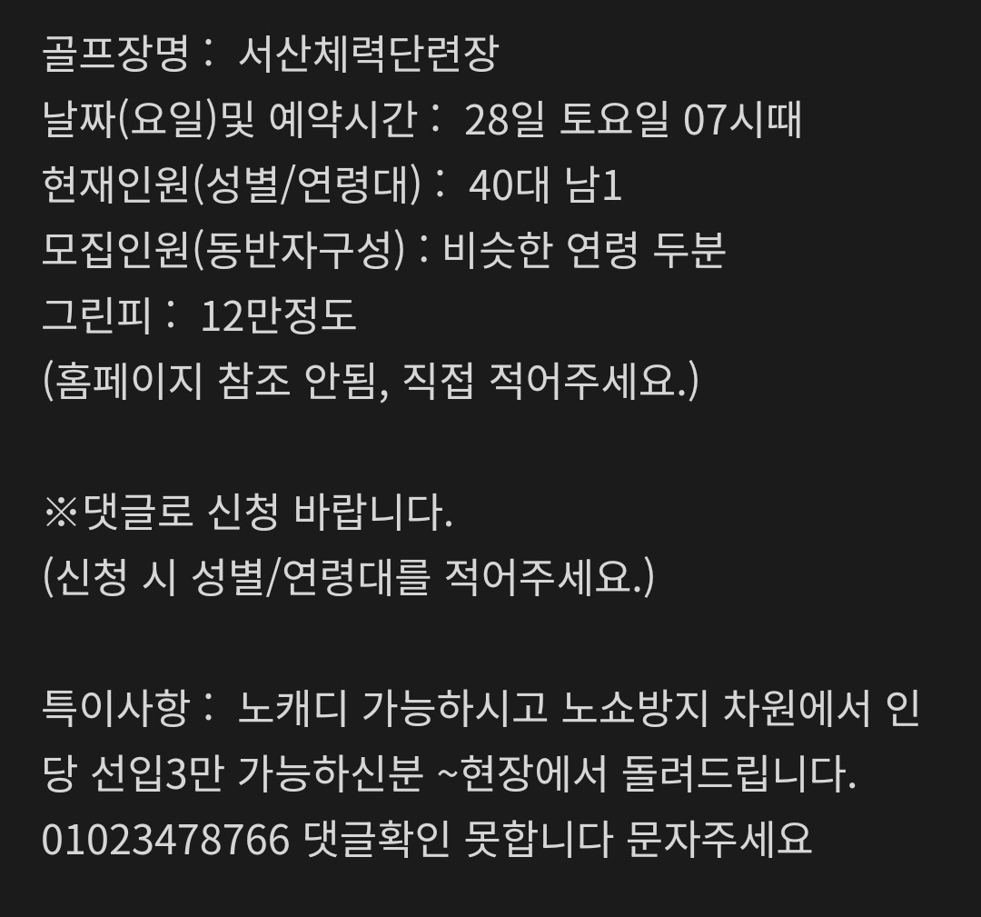 20일 월욜 서산노캐디
