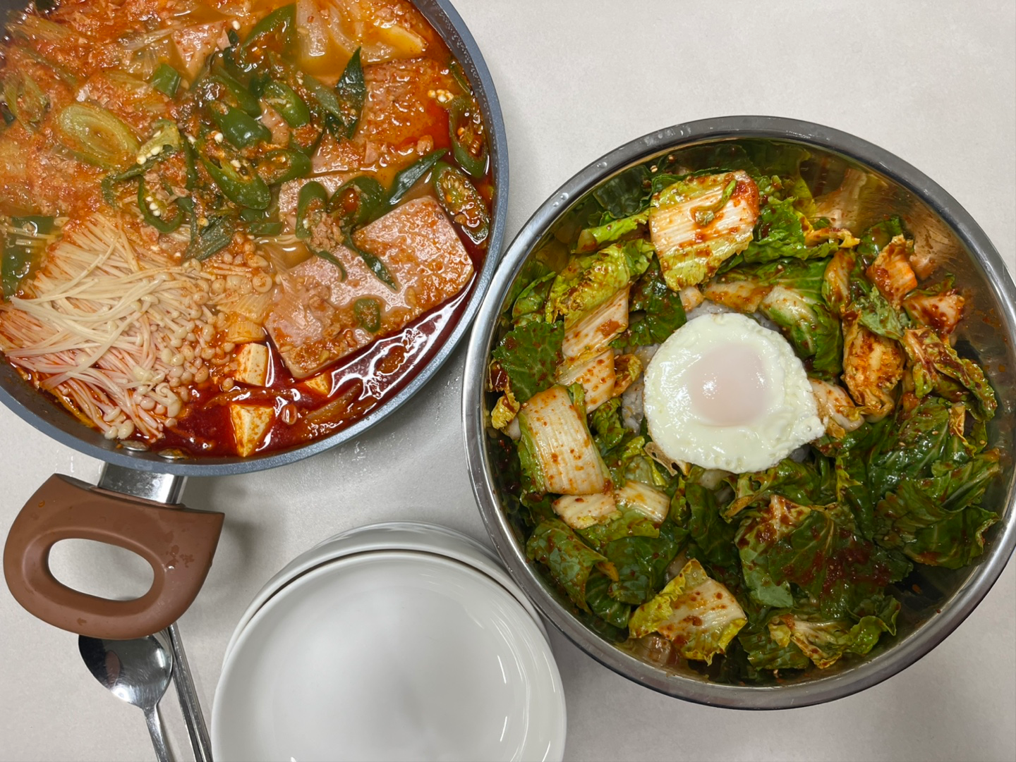 일타쌍피 봄동비빔밥과 스팸찌개