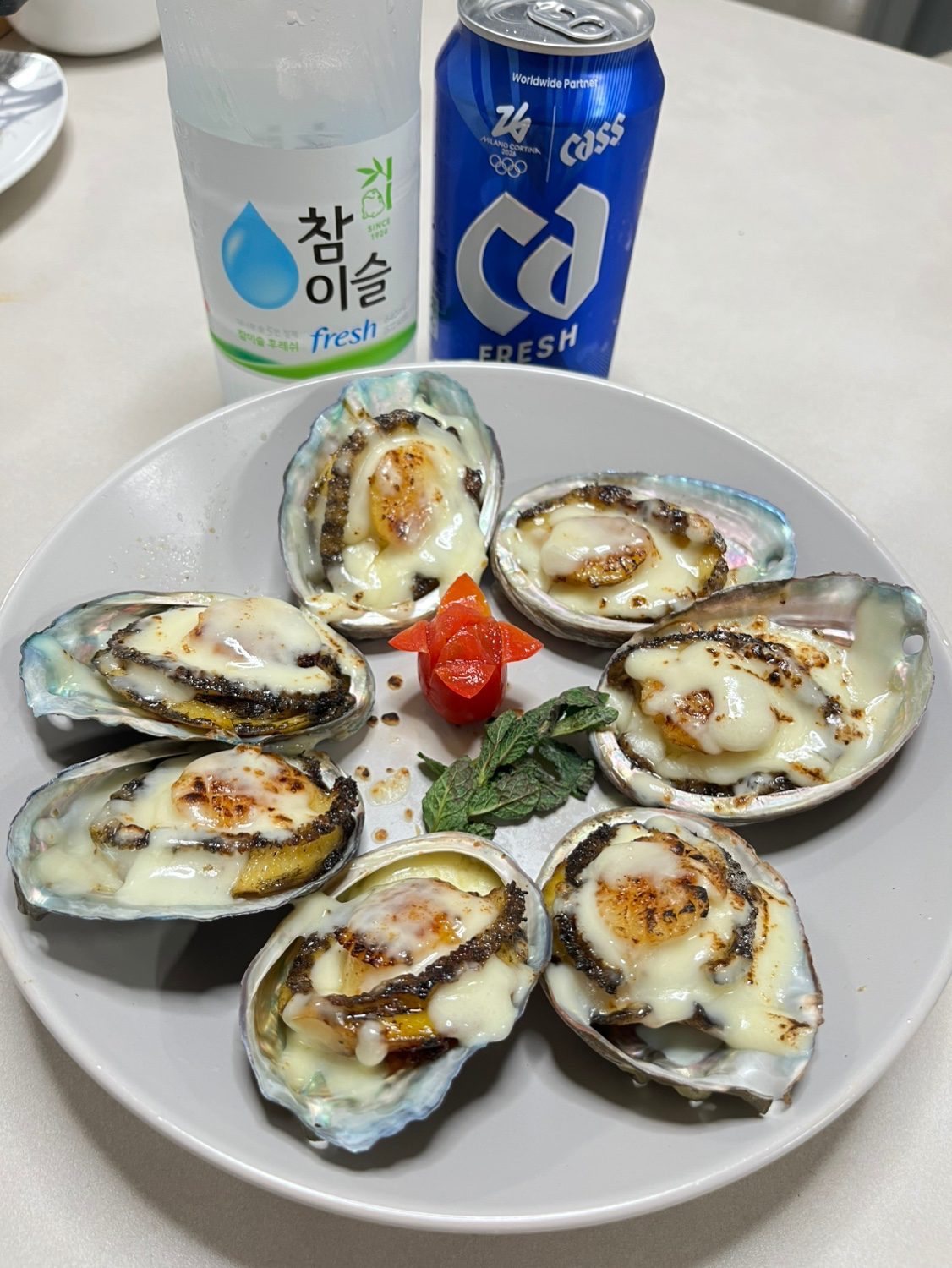 전복버터구이에 모짜렐라를 곁들인
