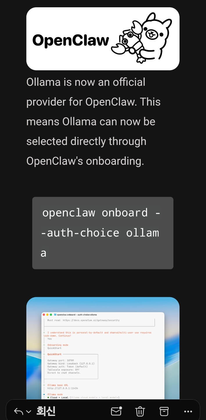 Ollama 가 OpenClaw의 공식 Provider로