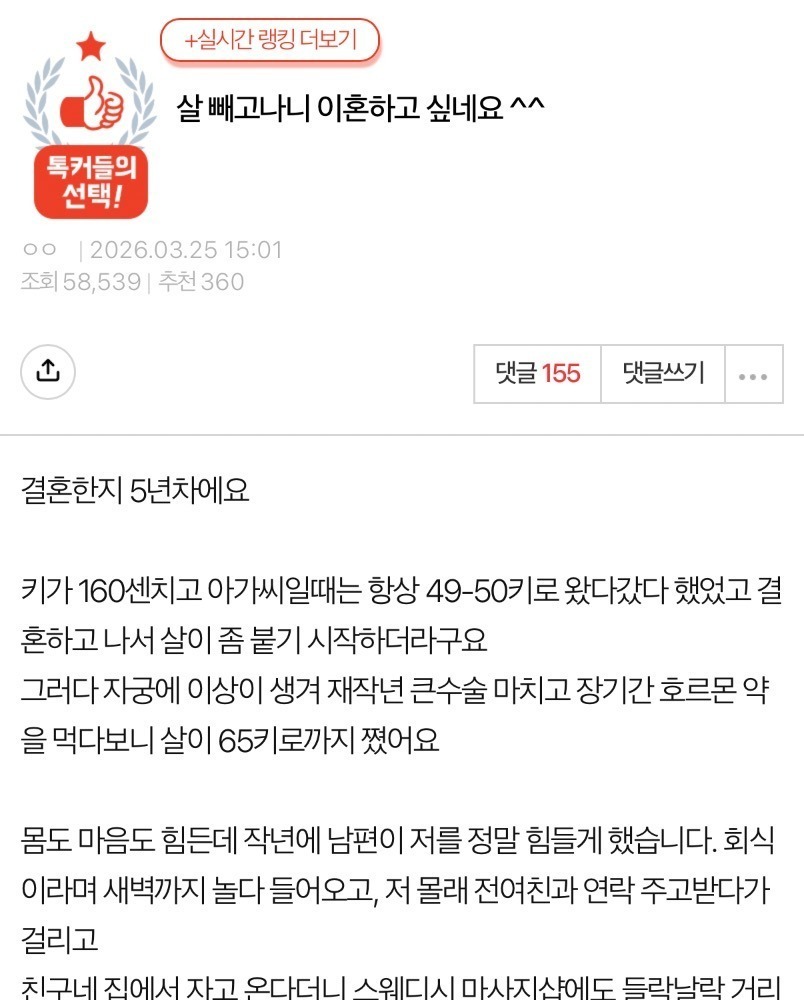 살 빼고나니 이혼하고 싶네요 ^^