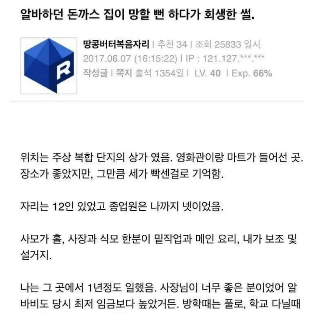알바하던 돈까스 집이 망할 뻔 하다가 회생한 썰