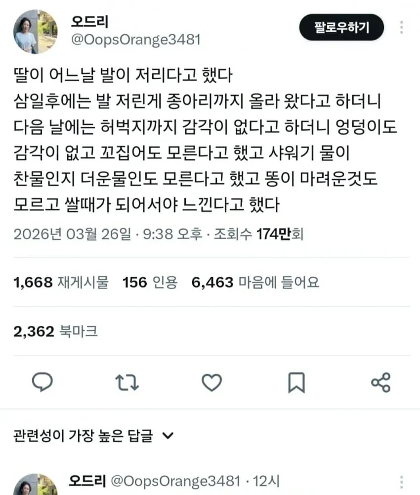 딸이 어느날 발이 저리다고 했다.