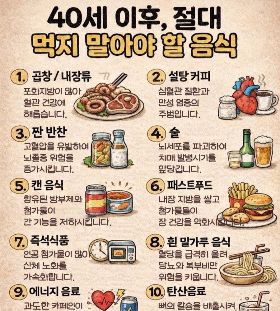 40세 이후 절대 먹지 말아야 할 음식