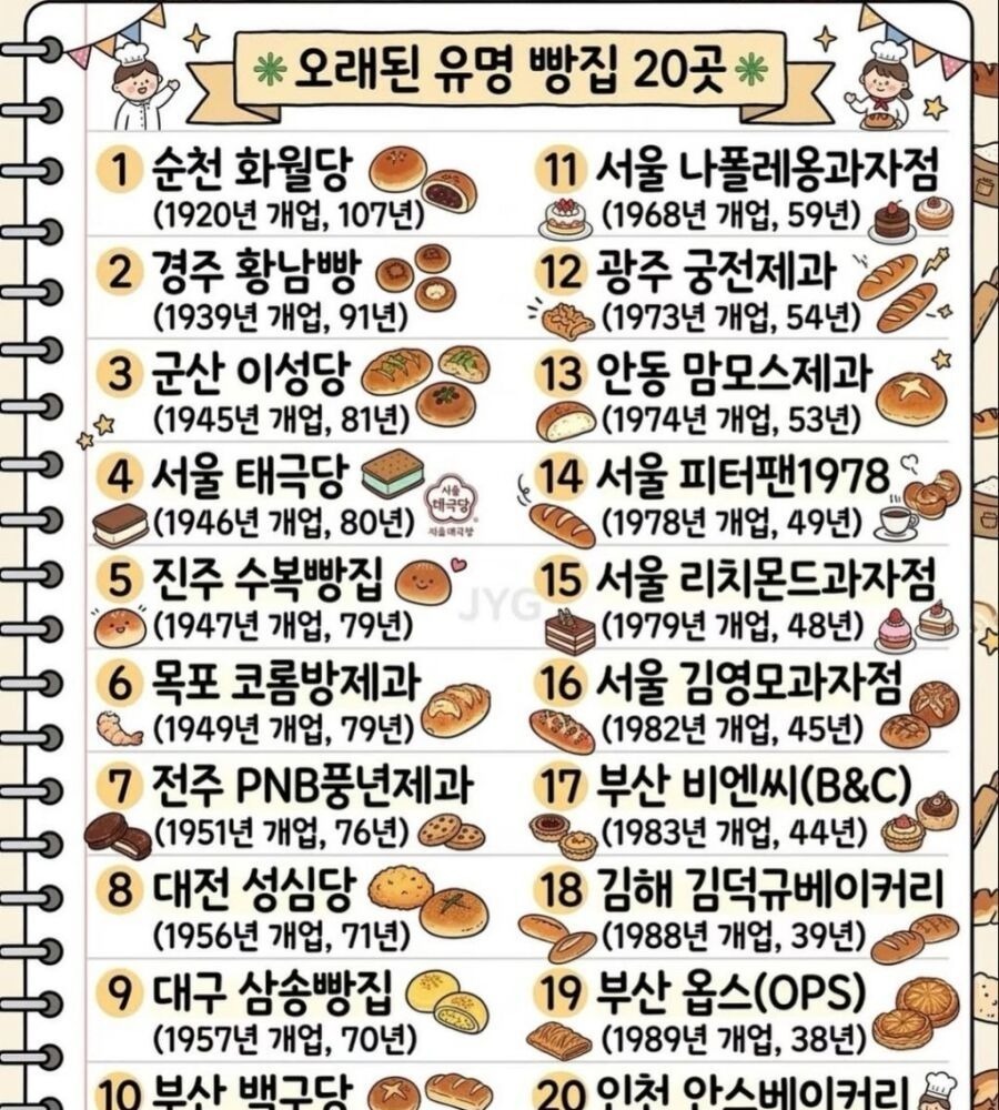 오래된 유명 빵집 20곳