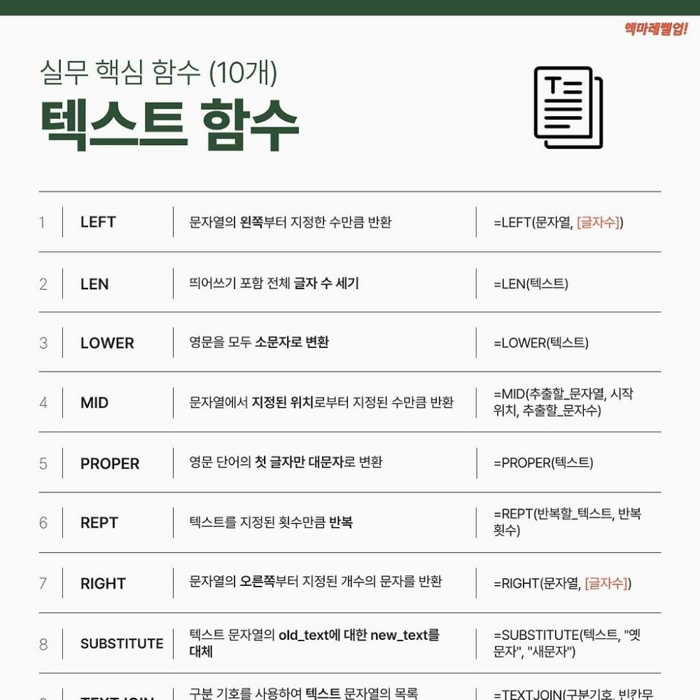 엑셀 실무에서 자주쓰는 함수 치트키