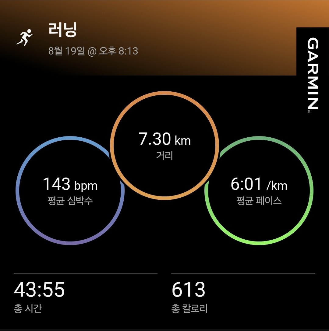 8.25. 폭염주의보 경보에 달렸더니 많이 달리지도 못하고 에너지만 소모했네요
