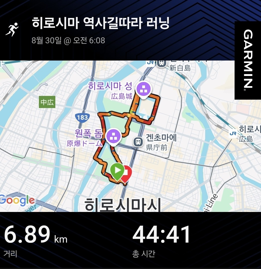8.29.히로사마 여행와서 아침런닝했습니다.