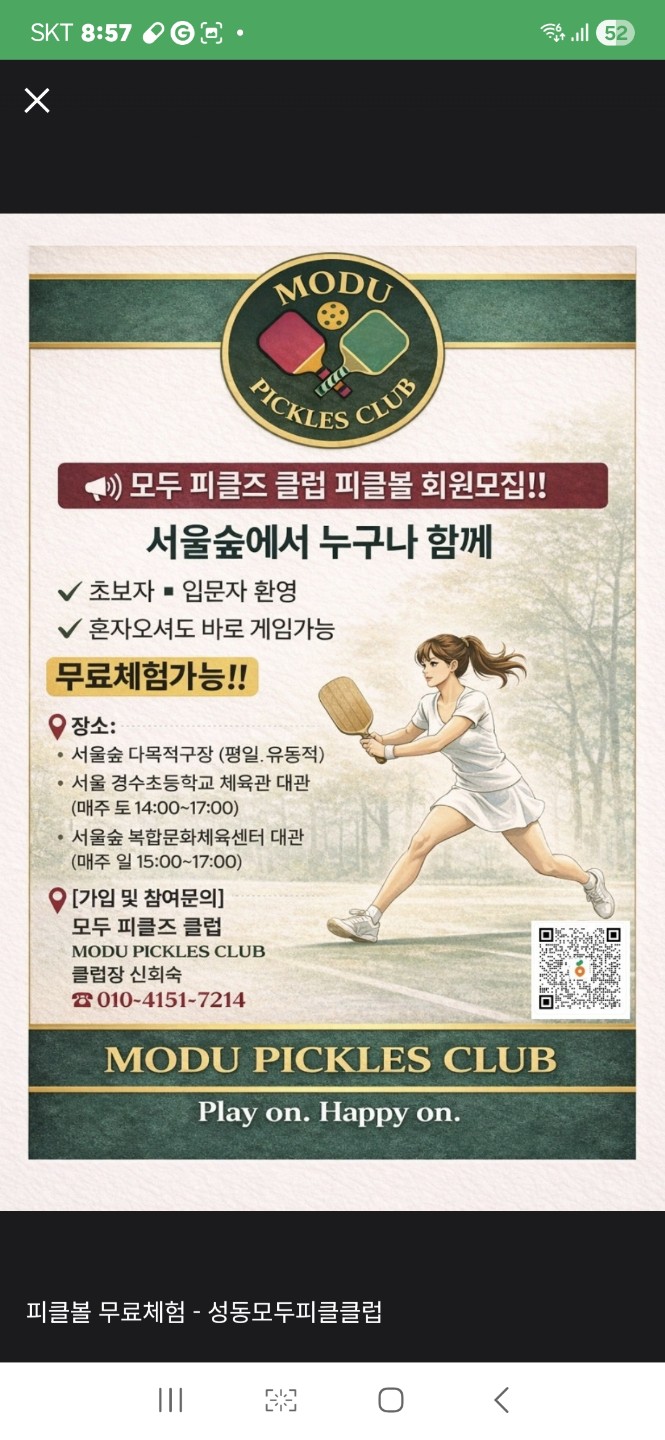 요즘 미국에서 선풍적으로 인기가 있는 뉴스포츠 피클볼을 같이 하실 친구들을 모으고 있어요. 피클볼은 테니스+탁구+배드민턴을 섞어서 만든 신스포츠입니다. 누구나 쉽게 시작해서 같이 즐길수 있는 우리를 행복하게 만드는 중독성 운동이랍니다.