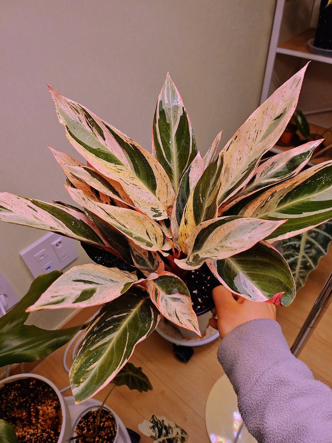 Q. 나만의 식물 자랑거리 하나씩 알려주세요 분홍색 꽃 피우는 싱고니움을 선물 받았는데 온화하면서도 고귀한 자태가 넘 예뻐요