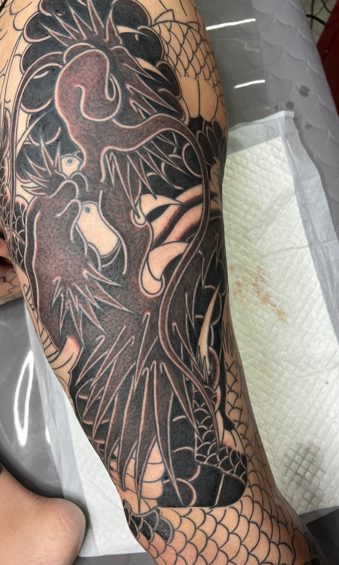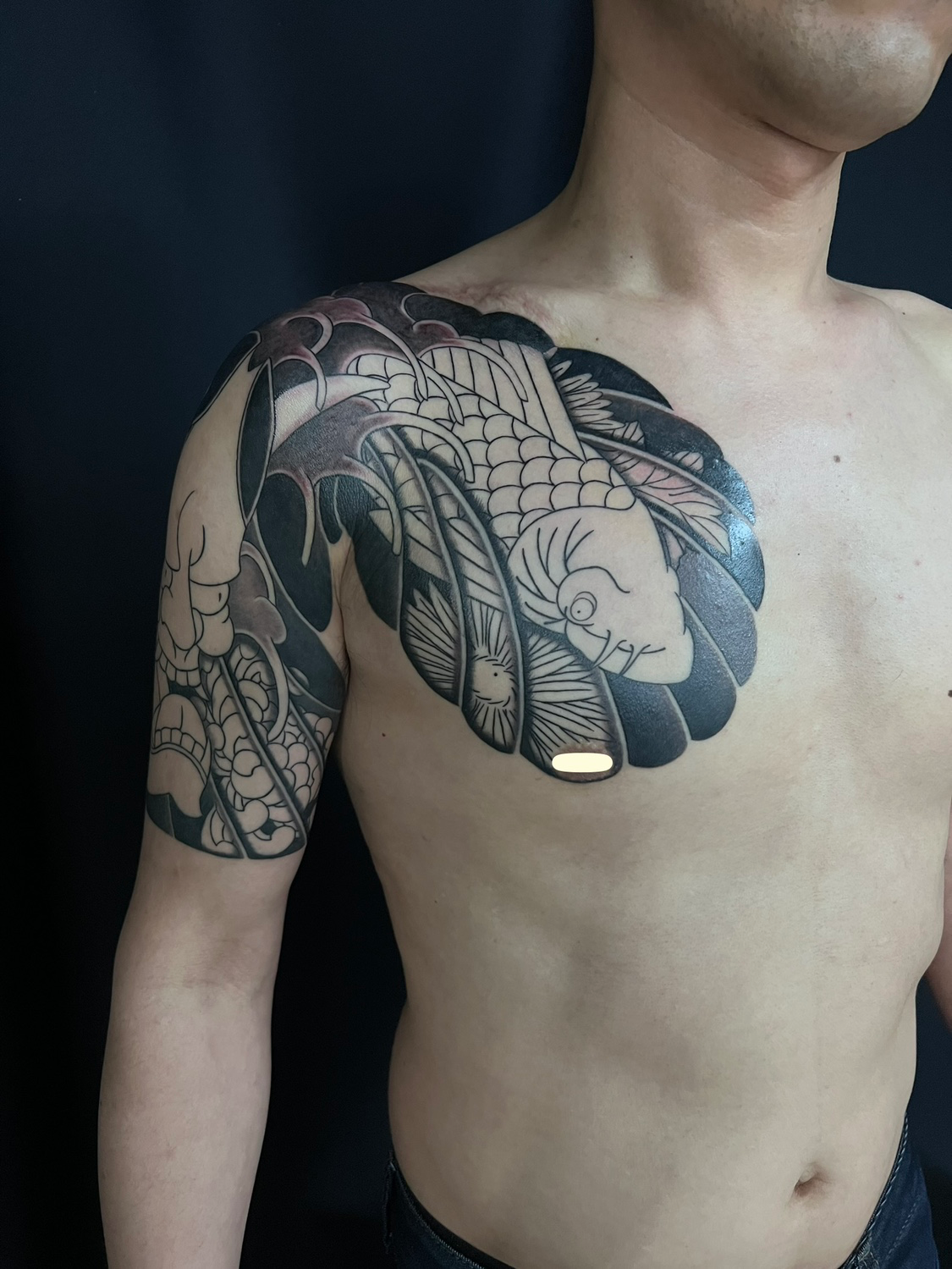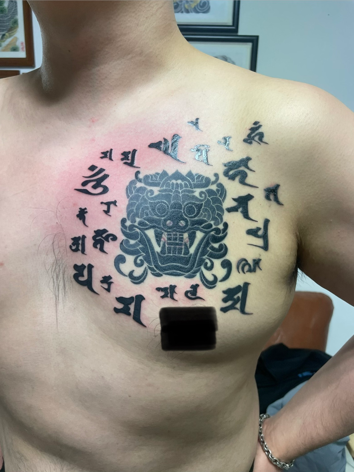 Q. 몸에 있는 타투를 올려주세요! 노출부위는❌ 가슴부터 긴팔있어요