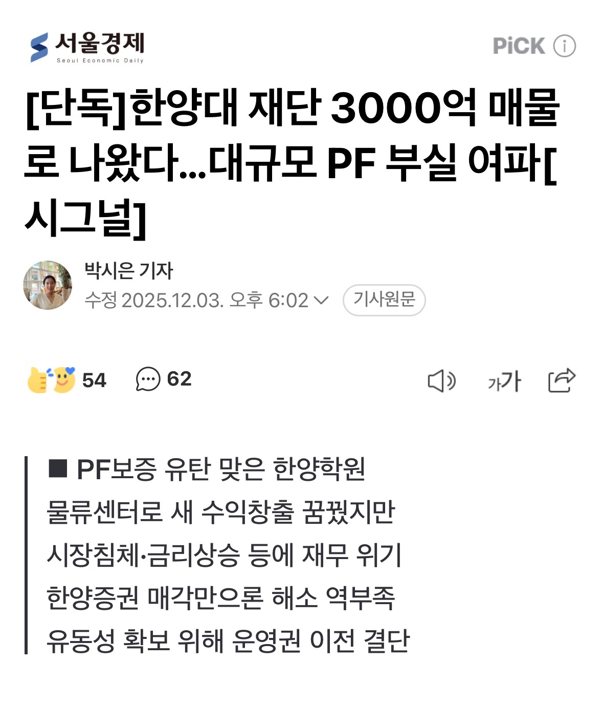 한양대 재단이 매물로 나왔네요.