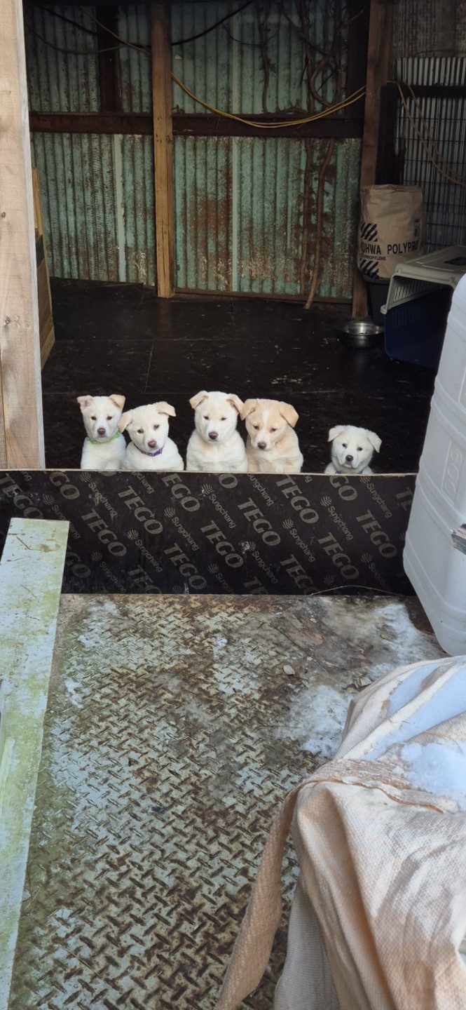 마을분 강아지로 태어난 지 2개월근방되는 새끼 둘이 있는데 주인분이 아프셔서 제가 대신