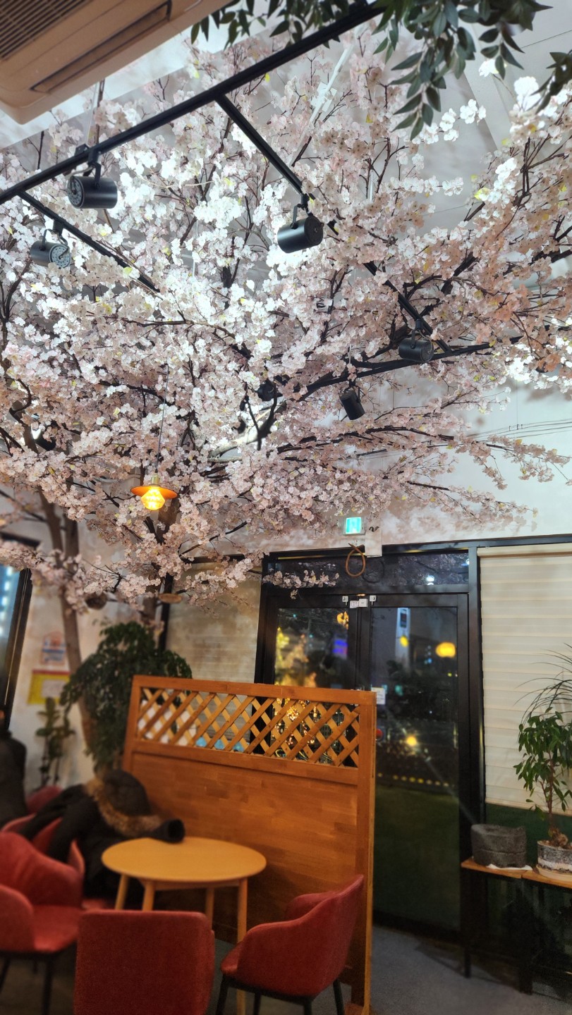 카페크기는 크지 않지만.. 내부에 벗꽃나무와 일반나무들..가짜지만 보는 이에게 황홀함을 선사할만큼 정말 인테리어가 너무 너무 예쁜 카페입니다.