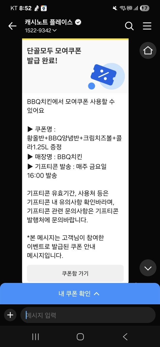 BHC 뿌링클+콜라1.25L 기프티콘을 보냈어요. 당신은 나에게 중요한 사람이거든요. 지금