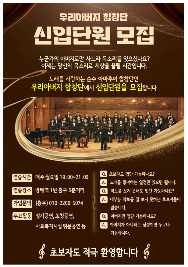 우리아버지 합창단 신입단원 모집중입니다.