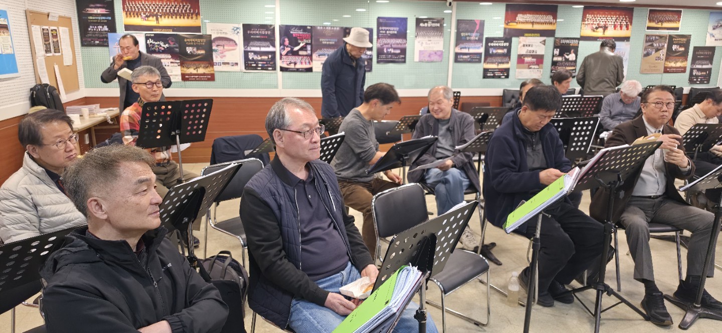 아름다운 화음으로 세상을 노래하는 남성합창단입니다. 현재 40여명의 단원이 활동하고 있습니다. 대부분 악보를 잘 못보는 초보자들로 구성되어 있습니다. 신입단원을 모집하고 있사오니, 함께 노래하며 즐거운 교제도 덤으로 누려보세요! 오디션 없으니 부담갖지 마세요~^^ 가입 문의 : 010-2209-5074