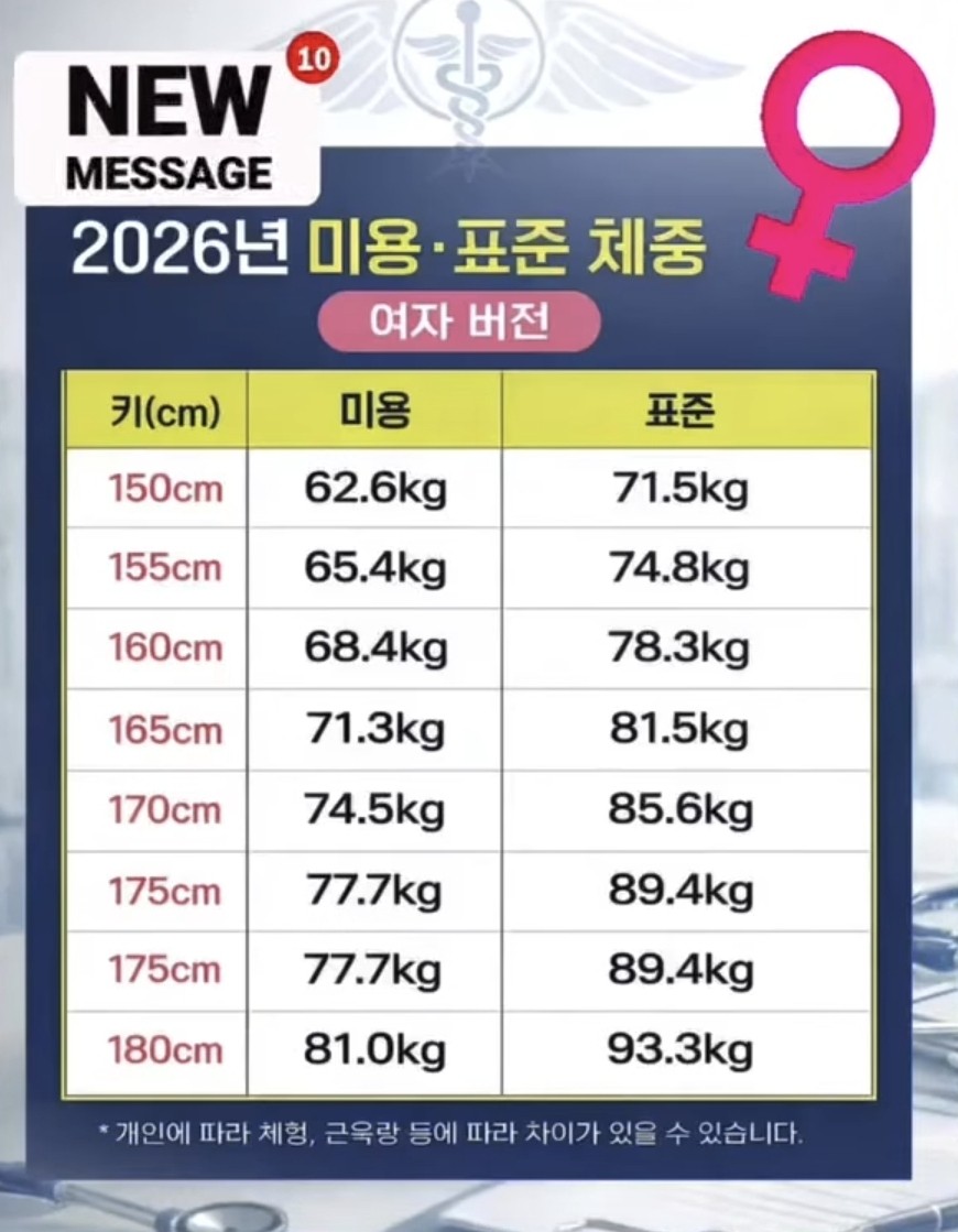 2026년 미용.표준 체중 여자버전