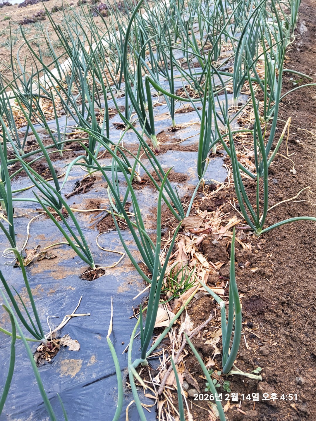 텃밭에서 양파랑 마늘이 추위를 잘 견디고