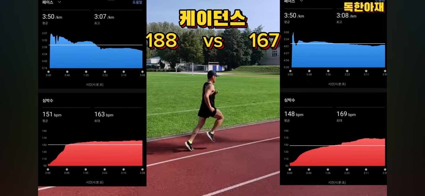 케이던스 주법과 스트라이드 주법 효율비교