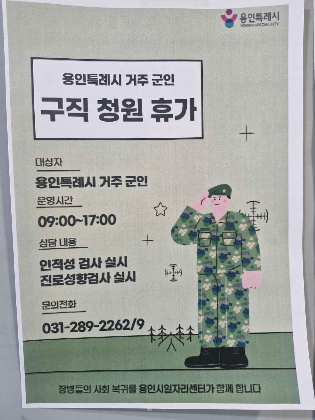 용인시 거주 군인 구직청원휴가