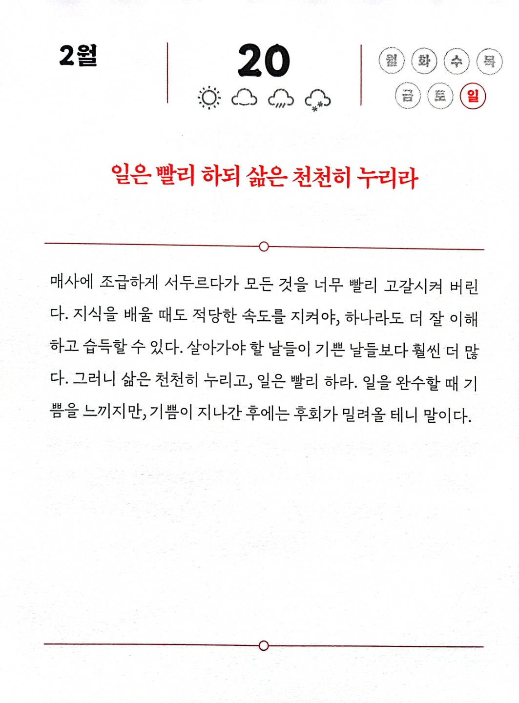일은 빨리 하되..삶은 천천히 누려라