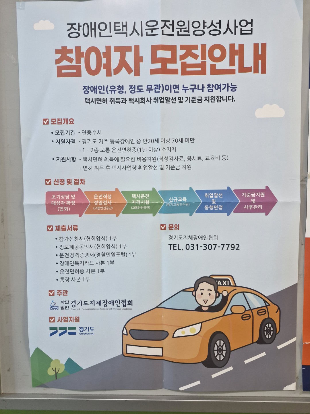 장애인택시 운전원 양성사업 참여자 모집안내