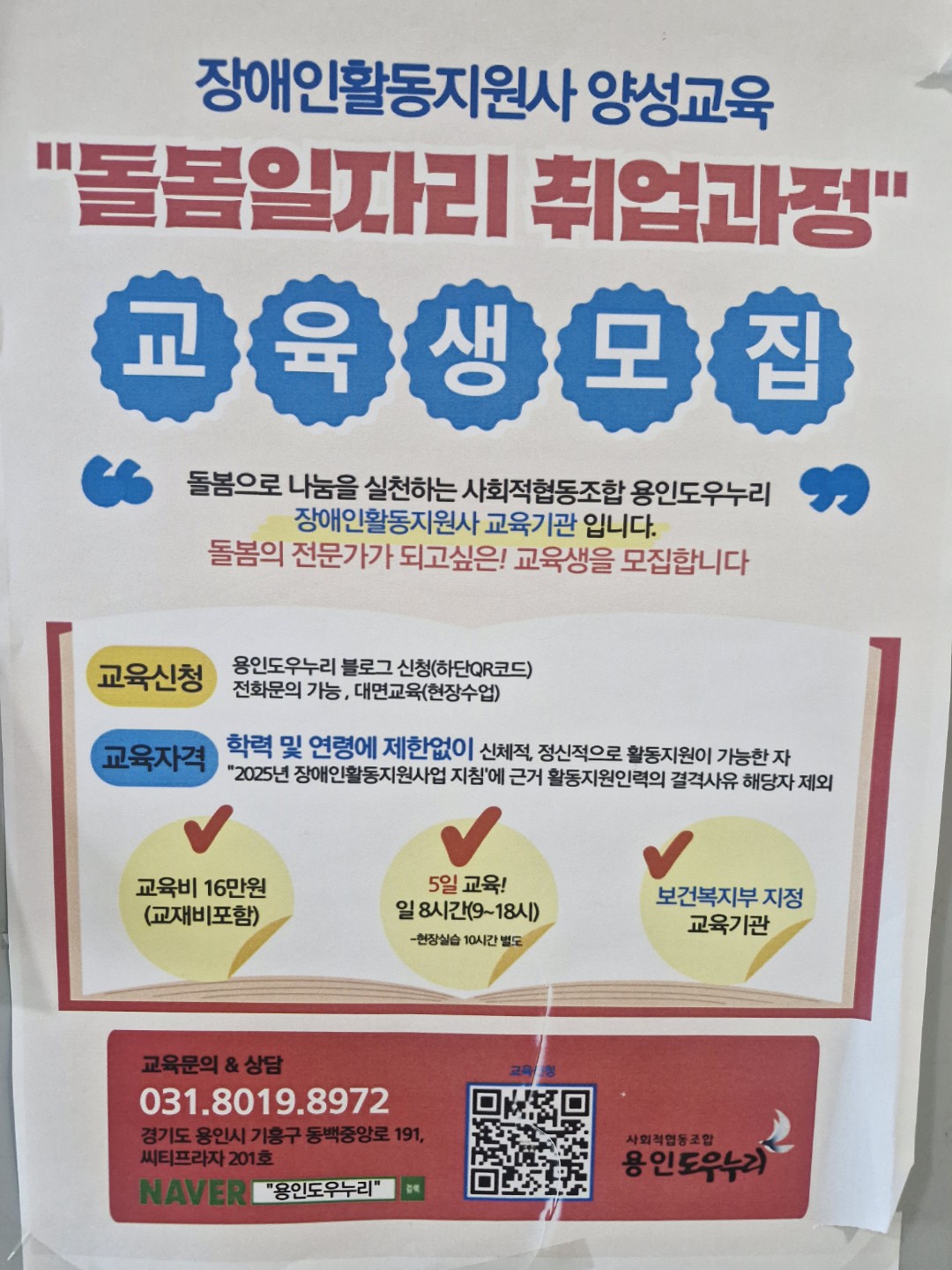 돌봄일자리 취업과정 교육생모집