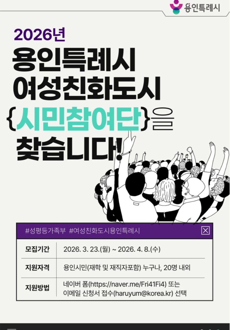용인시 여성친화도시 시민참여단 모집